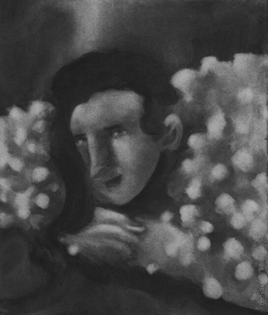 Charcoal and soft pastels on paper, 57 × 57 cm...
