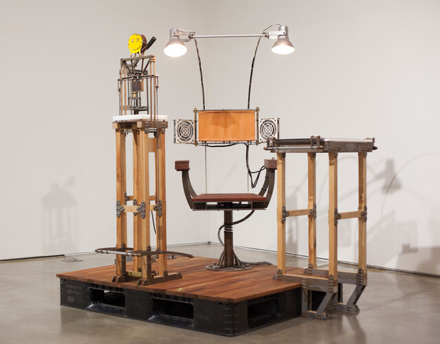 Plastic pallets, wood, iron, bolts, nuts, washers, iron, hammers, punches, wooden handles, plastic handles, springs, iron wires, leather, light fixtures, wires, cable ties, PE, bearing, needles, waxes, knives, cooling pens, aluminum tubes, 130 × 110 × 140 cm