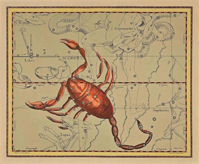 Cotton Vitellius C. III, folio 40. Anglo-Saxon work. Scorpion and snake fighting. The drawing of the scorpion is good, showing that the artist of the original, from which this was ...