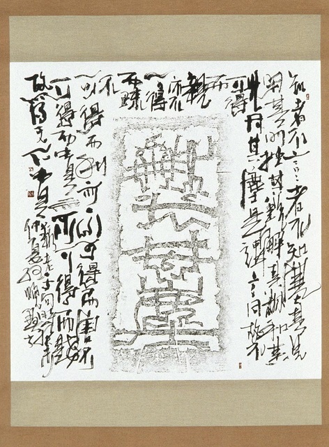 Dong Shouping (1904-1997) painted this short hanging scroll in ink and colors on paper. It depicts Mt. Emei's famous and very colorful sunrise. Diagonally set masses of rocks lead ...