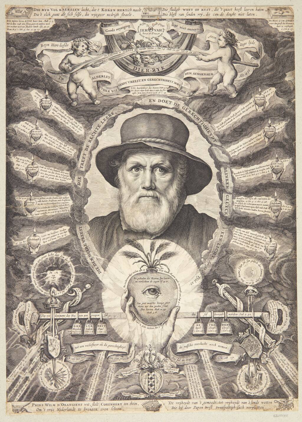 Title: Portræt af Dirck Volckertsz. Coornhert, i en allegorisk ramme