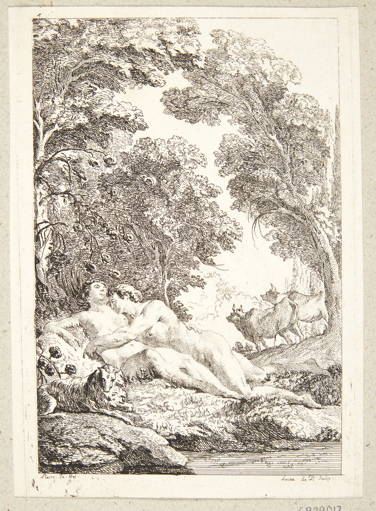 Title: Adam og Eva sovende i det jordiske Paradis. Illustration til "Le Paradis Terrestre, poême imité de Milton...", 1748