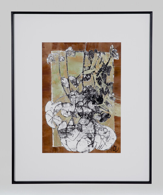Title: Louise Almon, Line Drawing Begonia with sienna border (2023)