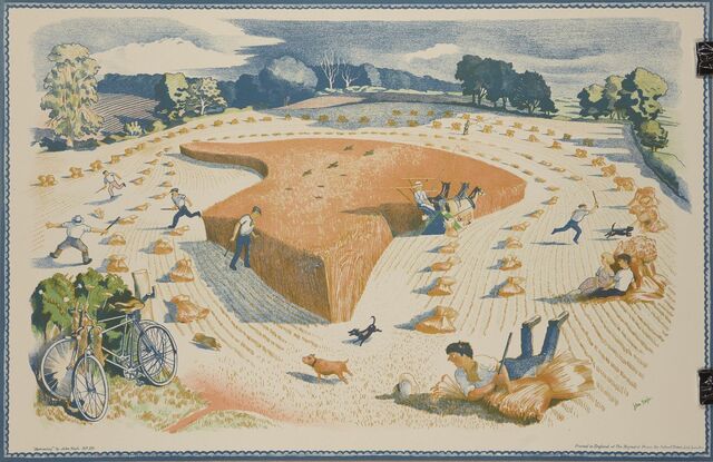 John Nash (1893-1977) and Felix Kelly, Harvesting; Drifter and Paddle Steamers (1946-7)