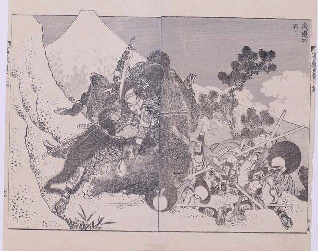 Title: Katsushika Hokusai, Samurai and Boar (1835)