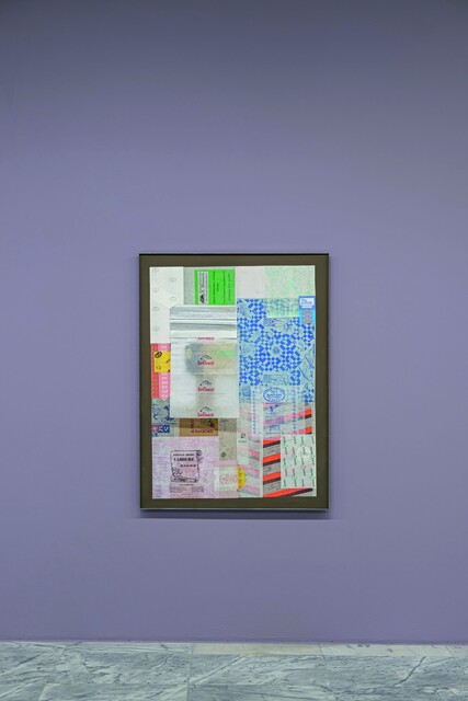 Mild steel, wood, packaging paper, 122 × 91 × 3 cm.