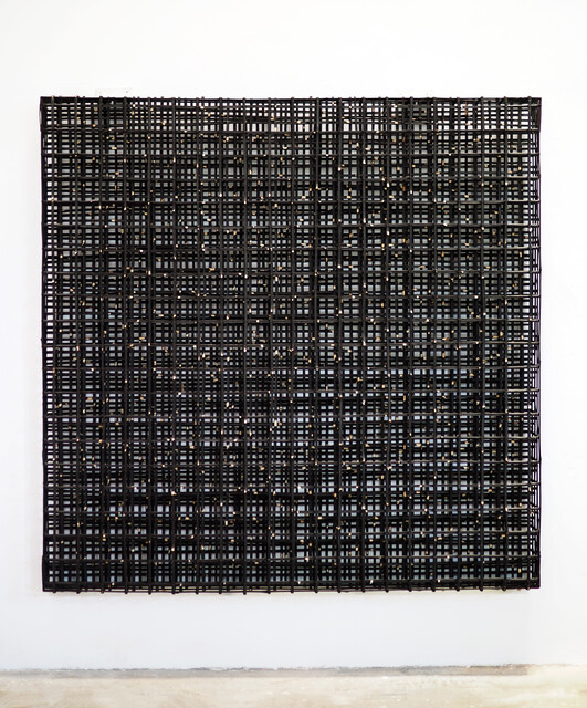 Bamboo rattan steel wire burlap beeswax damar resin earth pigment charcoal plastic twine oil paint...