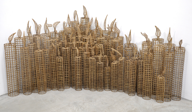 Bamboo, rattan, metal wire, copper wire, 90 × 187 × 127 cm.