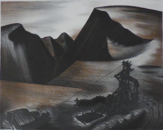 The porfolio of 30 lithographs has a board cover on which the title appears in relief print in black ink on tan paper mounted to the board. The case is bound on the left side with ...