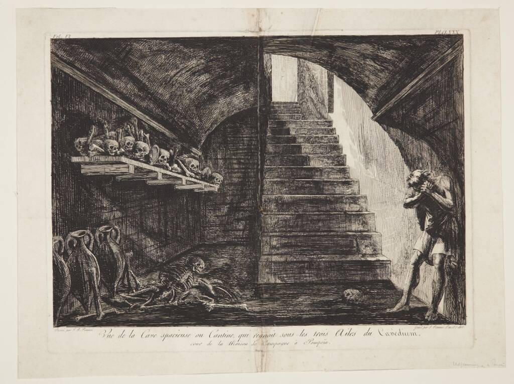 Vue de la Cave spacieuse ou Cantine, qui regnoit sous les trois Ailes du Cavedium, cour de la Maison de Campagne à Pompeiia