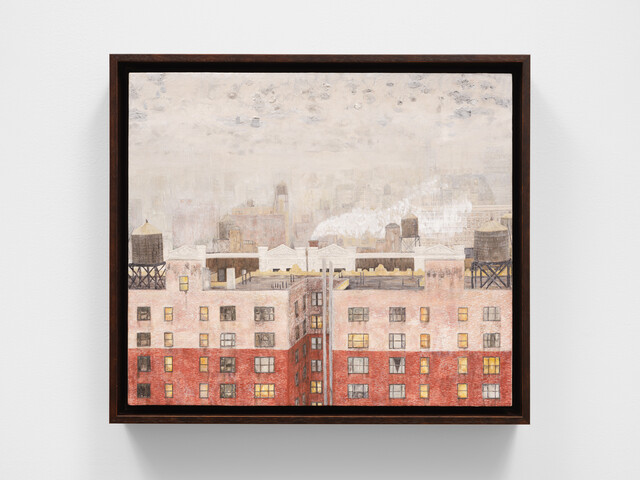 Egg tempera, pigment and collected dust from Manhattan window-panes on panel, 13 × 15 in