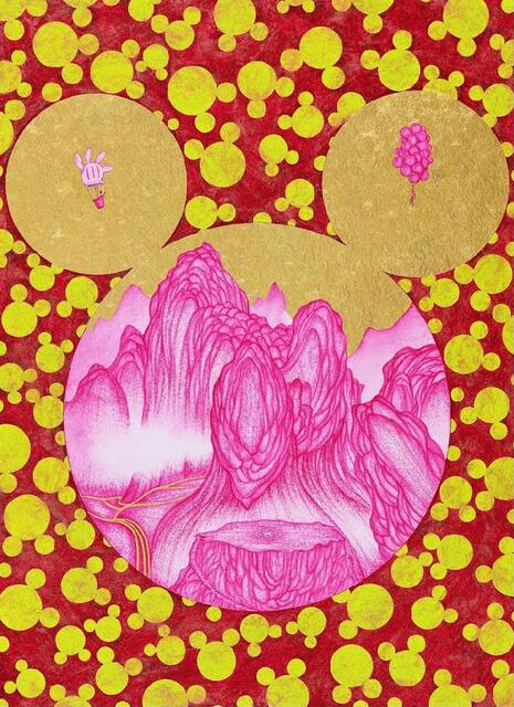 India hand made paper, gold leaf, ink pen, 107.7 × 77.7 cm...
