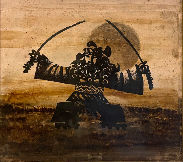 Mixed media and acetate on cardboard, 32 × 35 × 1 cm.