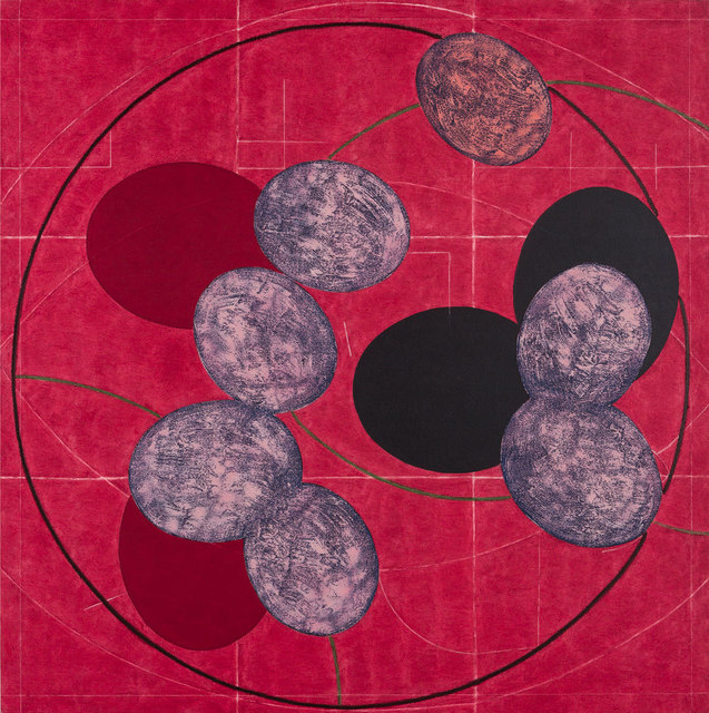 Oil, acrylic and polyester on canvas, 180 × 180 cm.