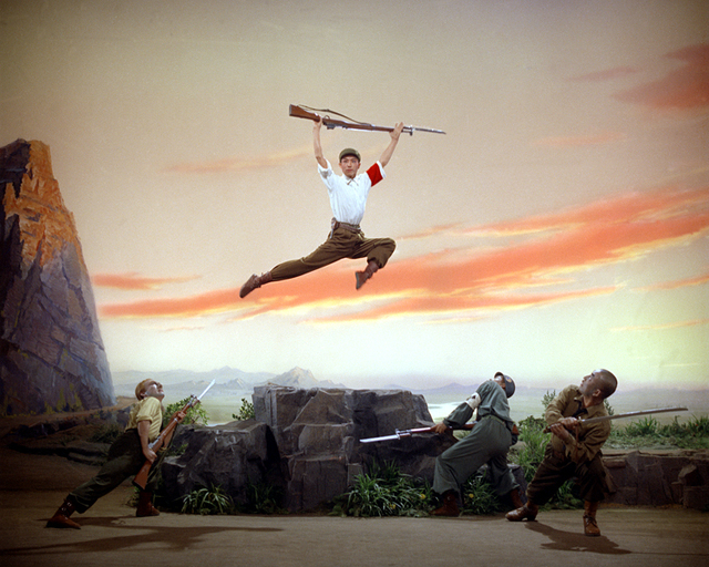 ZHANG Yaxin 张雅心, 严伟才孤身追杀敌军,现代京剧《奇袭白虎团》剧照, 长春电影制片厂 Yanweicai fighting with enemy alone, Still of Modern Opera , Changchun Film Studio (ca. 1971)