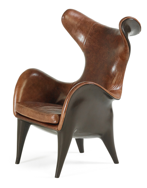 Carved and Kevlar-reinforced resin, leather, 46 × 28 1/2 × 37 in.