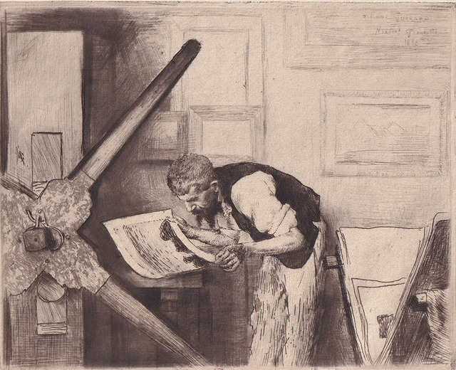 Norbert Goeneutte, Henri Guérard à sa presse. Portrait du graveur Henri Guérard dans son atelier (1888)