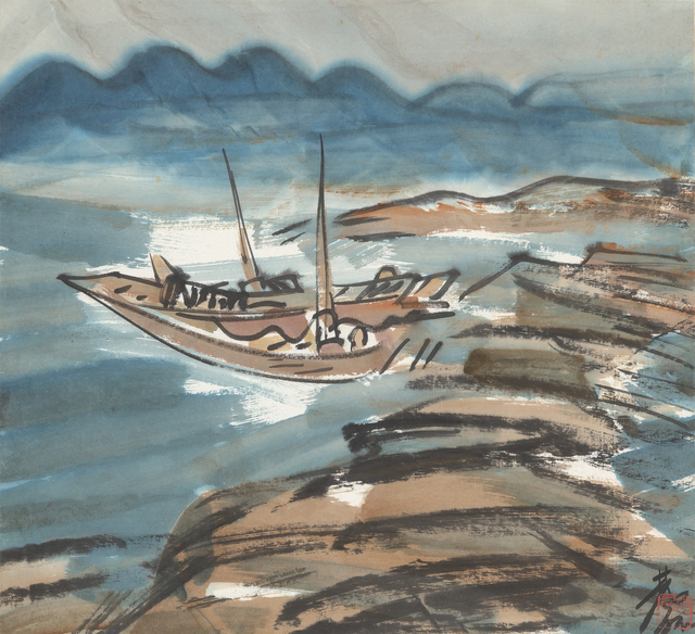 Title: Lin Fengmian, Riverside fishing boat 江畔漁船 (1930-1940)