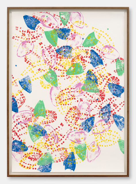 Stamp printing with lino printing inks, 100 × 70 cm.