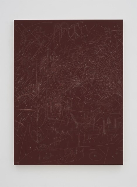 Red phosphorous and binder on wood, 55 3/25 × 41 37/100 × 1 37/100 in.