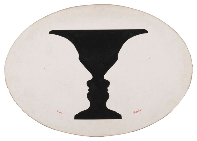 Mixed media on oval board, 49.
