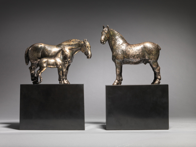 Herbert Haseltine, Percheron Stallion Rhum and Mare Messaline with Foal (ca. 1923)
