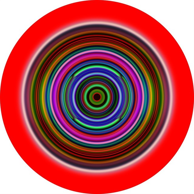Épreuve couleur avec résine sur panneau, peinture et MDF / Pigment print and resin on panel, paint and MDF, 16 in diameter.