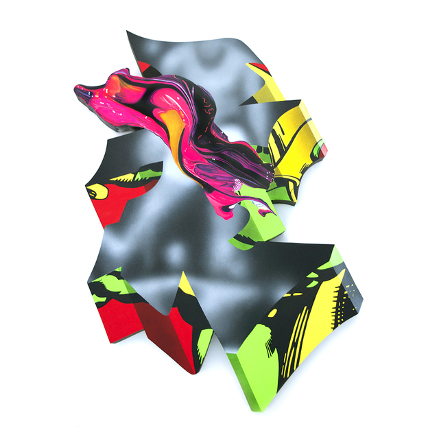 Acrylic and Spray Paint on Coated MDF and Polystyrene Panel, 28 × 46 × 3 in...