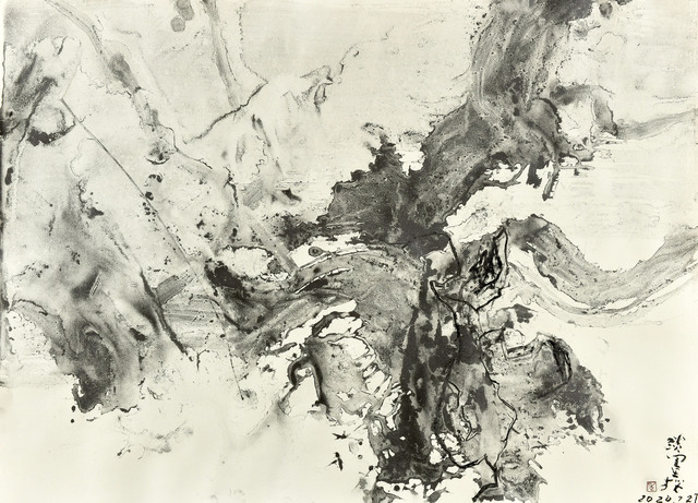 Mixed media on washi paper mounted on wood panel, 162 × 194 cm...