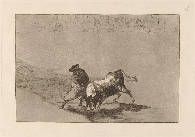 Francisco de Goya, El diestrisimo estudiante de Falces, embozadoburla al toro con sus quiebros (The Very Skillful Student of Falces, Wrapped in His Cape, Tricks the Bull with the Play of His Body) (in or before 1816)
