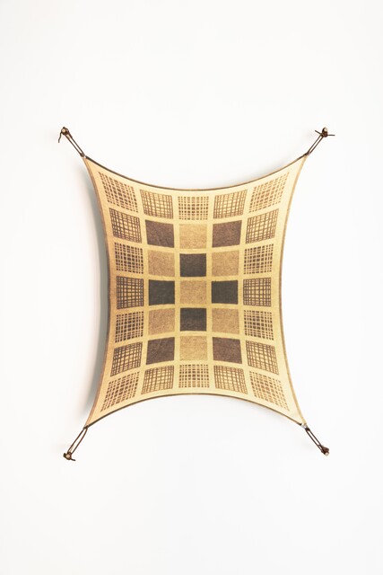 Inkjet print on TNT fabric, food stains, metal grommets, 250 × 70 cm...