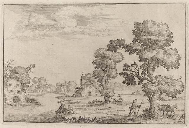 Title: Ercole Bazicaluva, Lakeside Village with Herdsmen (1638)