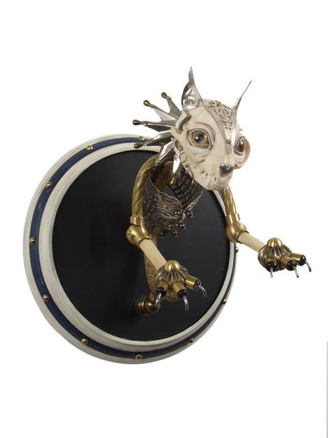 Antique hardware and findings, brass, bone, painted steel, glove leather, glass eyes, 14 × 8 × 8 in...