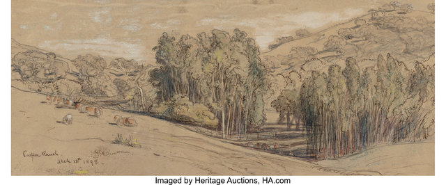 Samuel Colman, Eucalyptus Groves on the Cooper Ranch, Santa Barbara, and Cypress Trees, Cypress Point (two works)