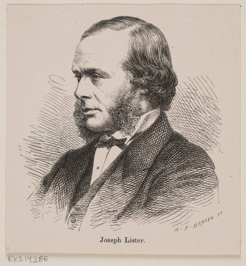 Dateret ud fra fotografi af Joseph Lister taget under hans deltagelse i The International Medical Congress, som blev afholdt i Philadelphia, USA i 1876.