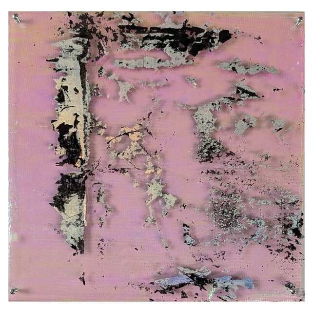 Painted Canvas/ Acrylic Base/Acrylic And Holographic Paint Transferred/ Screws, 30 × 30 × 1 cm