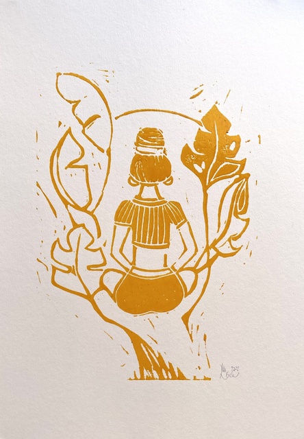 Linocut block print, 11 1/2 × 8 1/2 in.