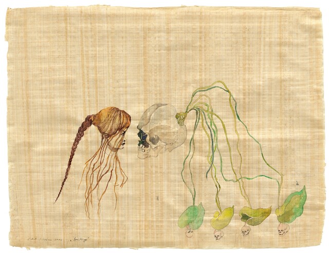 Watercolour and Indian ink on papyrus, 61 × 81 cm.