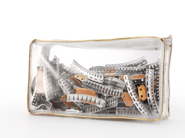Hair Clips in Custom Vinyl Slipcover, 5 × 2 1/2 × 9 in.
