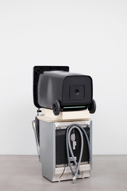 Dishwasher, styrofoam, garbage bin, 161 × 65 × 107 cm.