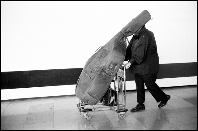 Guy Le Querrec, Jazz musician Charlie Mingus. Marseille-Provence airport, Provence-Alpes-Côte d'Azur, France (1976)