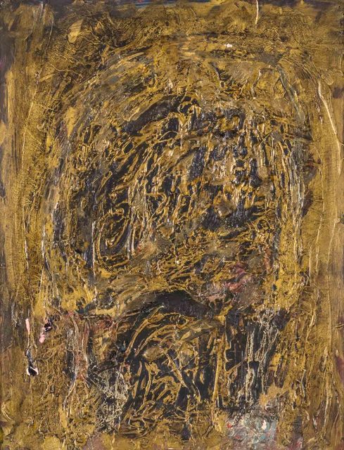 Mixed media on paper laid to board, 25 1/2 × 19 1/2 in...